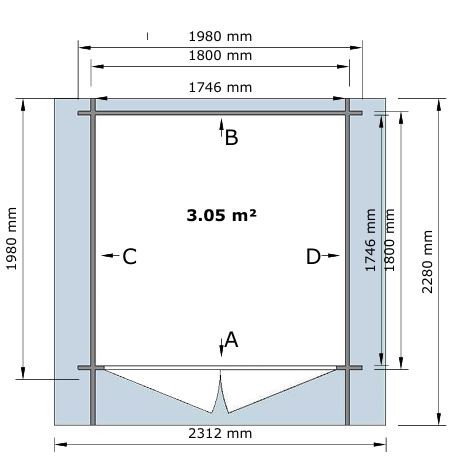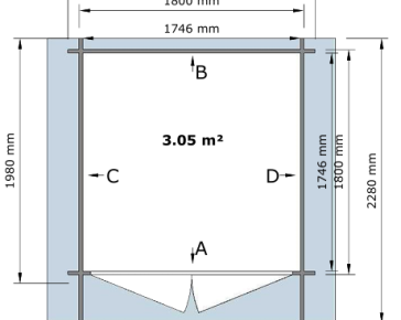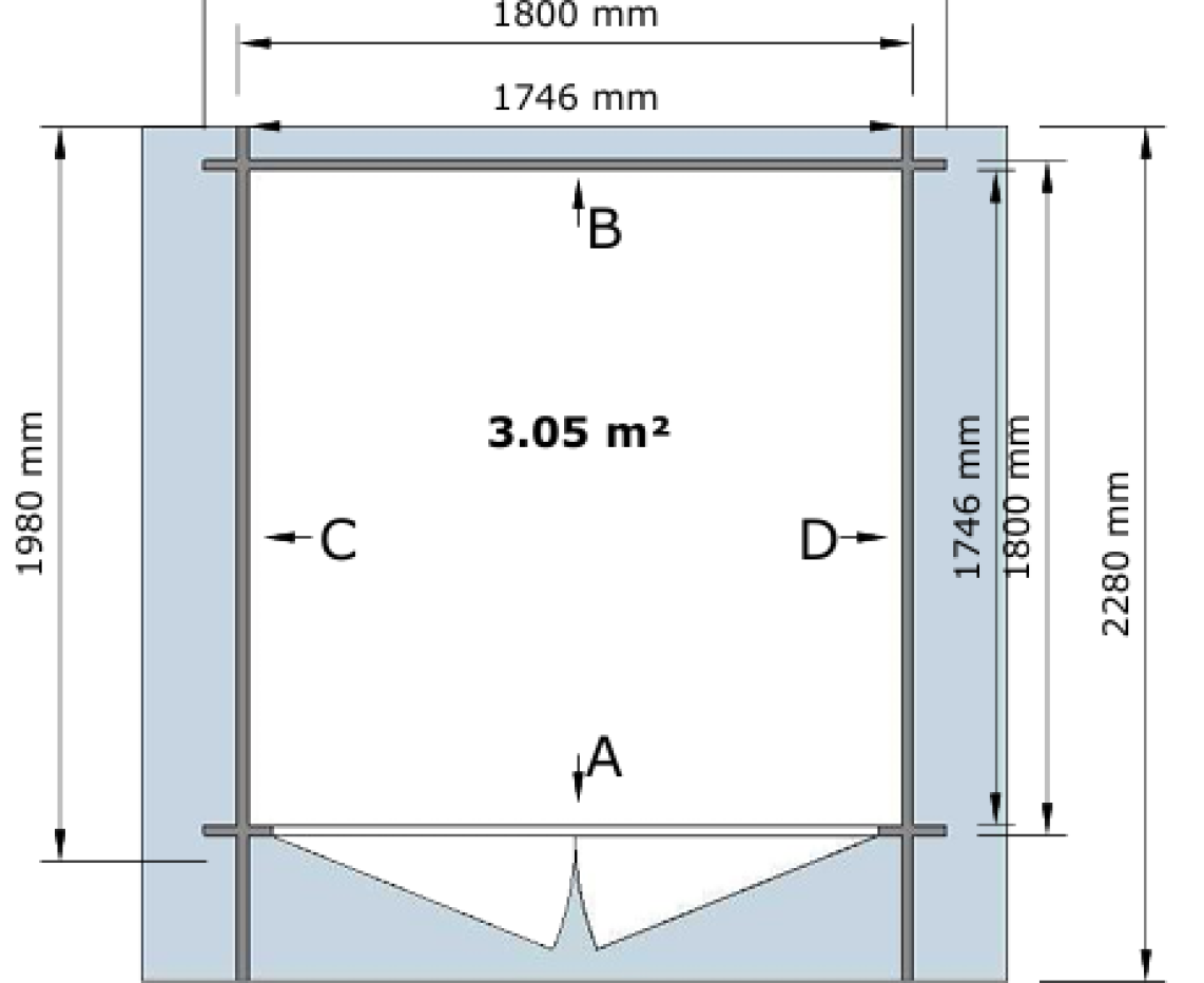 · Išoriniai matmenys: 200 x 200 cm (plotis x gylis)
